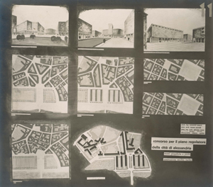 Alessandria - Piano regolatore della città, progetti - Concorso per il piano regolatore della città di alessandria. Visioni prospettiche e piante, sistemazione vecchio nucleo. Fotografia del progetto presentato da Guerci e altri al concorso per il piano regolatore della città di Alessandria (non datato, ma probabilmente successivo agli anni 1945 - 1946). Tavola n. 11