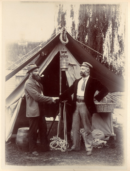 Nuova Zelanda:  Mattia Zurbriggen stringe la mano a un altro signore (J.J. Kinsey?) davanti a una tenda